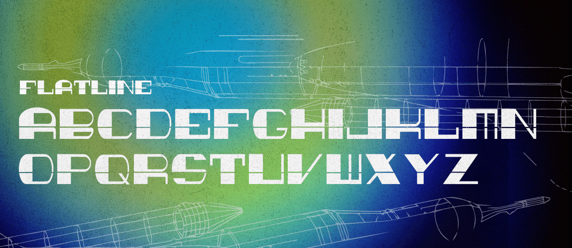 Flatline is an all caps, geometric and futuristic style display typeface. The letterforms are all severed by a consistent, flat line.